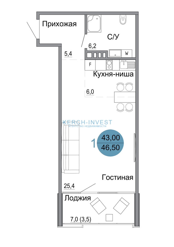43 м²